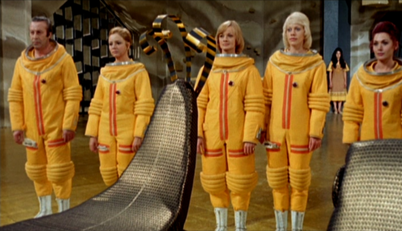 Sometimes referred to as the “East German Barbarella,” In the Dust of the Stars (Im Staub der Sterne) is one of the strangest films to grace the movie screens of the GDR; or anywhere else for that matter. Featuring a cast that hailed from a number of different Eastern European countries, In the Dust of the Stars is the story of a team of cosmonauts sent from the planet Cyrno in response to a distress call on TEM 4, a desolate planet on the outskirts of inhabited space. When they arrive, they are whisked off to an extravagant compound belonging to a man known only as the “Chief”—a decadent despot who has enslaved the indigenous people of TEM 4 for his own profit and enjoyment. The team is invited to a party that features dancing maidens in an art park, boa constrictors on the hors d’oeuvre table, and a screaming woman on a trampoline. At the party, the team is brainwashed into assuming that nothing is wrong on the planet, but the one crew member who skipped the party remains skeptical. He thinks something is amiss, and he is, of course, correct.