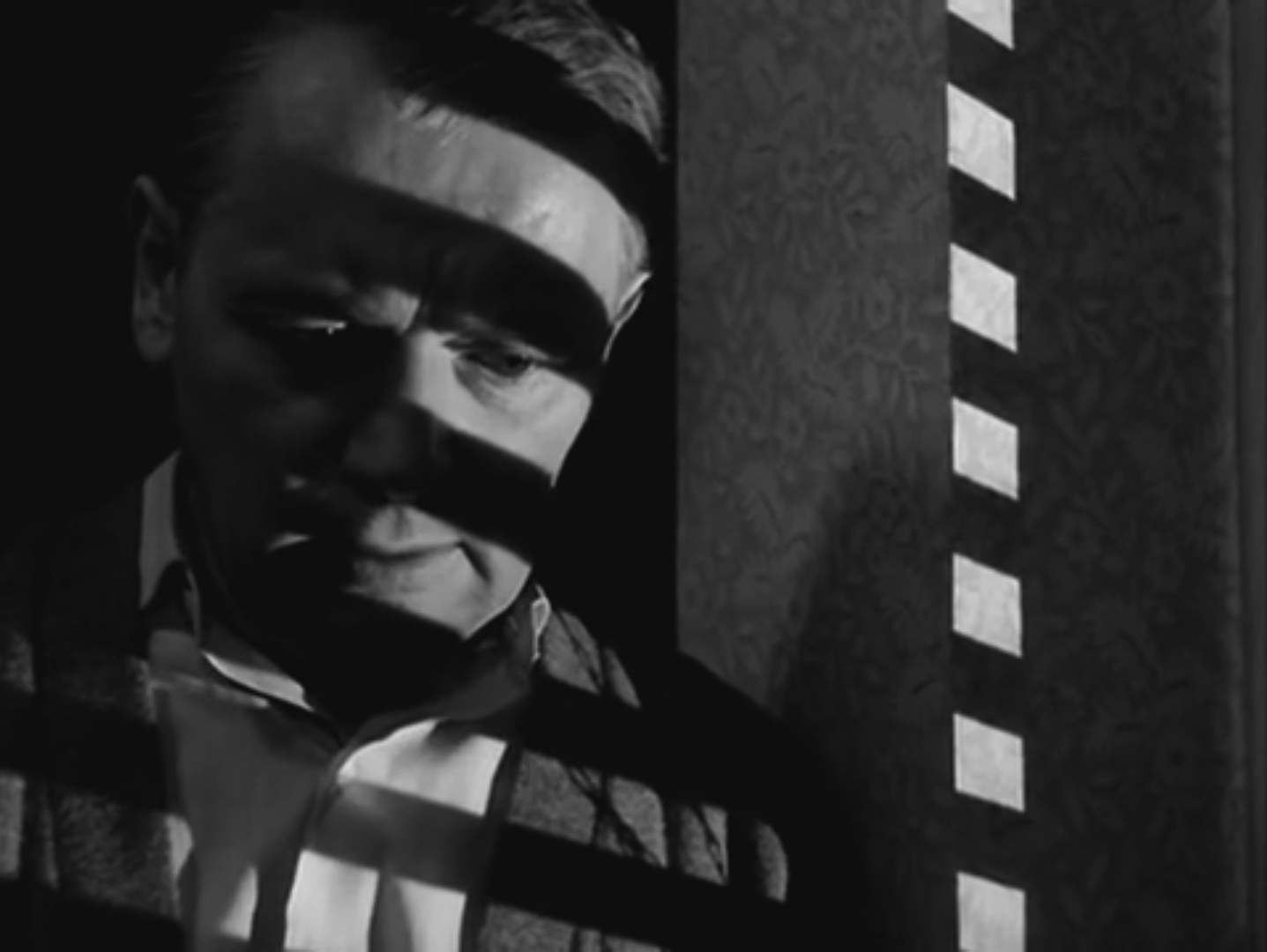 The cinematography for this film was by Rolf Sohre, and it is sensational. The dramatic shots of the trains pulling in and out of the yard and roundhouse are reminiscent of O. Winston Link’s moody railroad photographs. Many scenes in the film are bathed in light and shadows, including that reliable old noir trope: the striping of venetian blinds at night. Faces often are either hidden or partly obscured by darkness, echoing the dark secrets that hide in the pasts of the two older men.