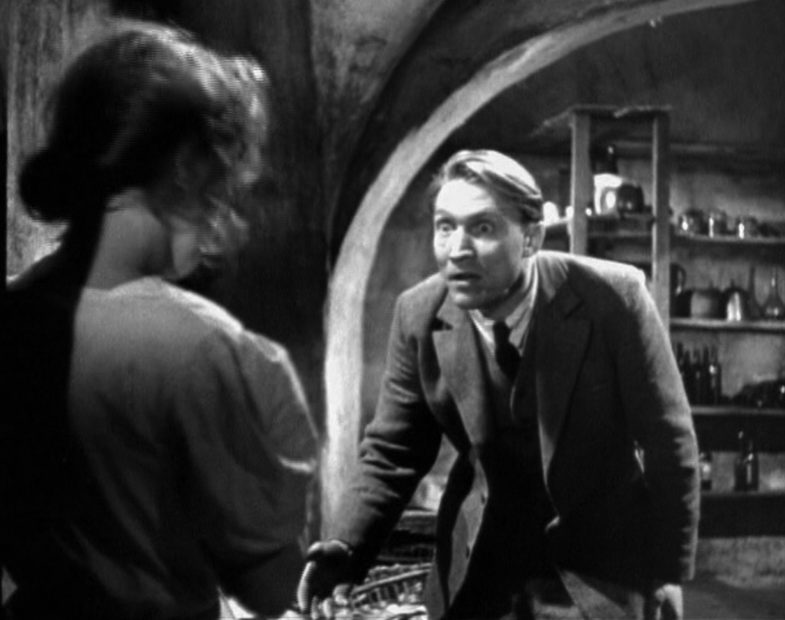 Playing Gabler’s long-suffering girlfriend, Christina, is Gisela Trowe. Ms. Trowe had a banner year in 1948, appearing in four films, three for DEFA and one for the short-lived Camera-Filmproduktion. She was the daughter-in-law of Erich Engel, but if her casting here was nepotistic, it’s a moot point—her performance is very good, and is, in some respects, the most important one in the film. Ms. Trowe appeared in several movies on both sides of the Iron Curtain during the fifties. Once she decided to settle in the West, her roles were restricted primarily to television. With her sultry voice, she became one of the leading voice actors in Germany, often dubbing the voices for sexy women such as Melina Mercouri, Gina Lollobrigida, Rita Hayworth, and Simone Signoret.