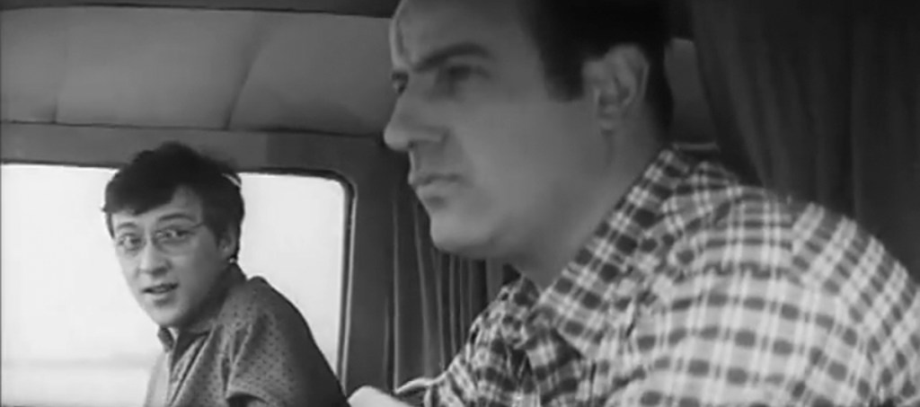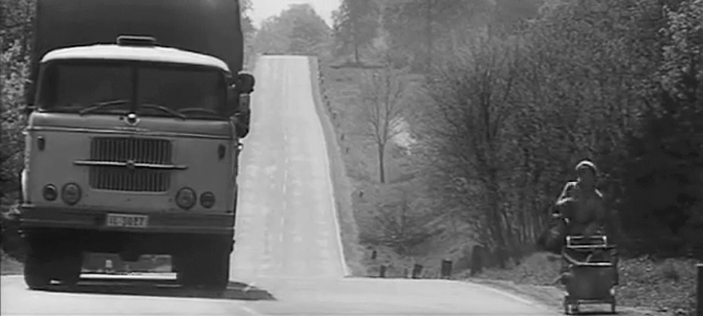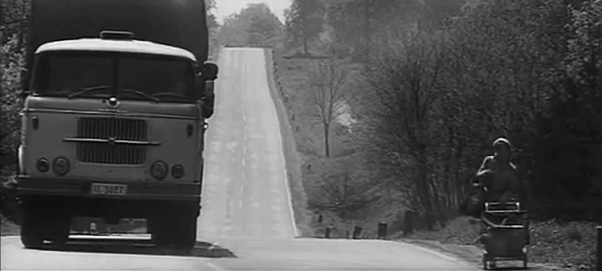 Manfred Krug, Jaecki Schwarz, and Jutta Hoffmann made an interesting trio. Krug was a well-established movie star by this point. Long Roads was the first time Krug played a long-distance truck driver, but it wouldn’t be the last. He would do it again in How to Feed a Donkey (Wie füttert man einen Esel) and would have success in West Berlin as a long-haul truck driver in the popular series Auf Achse (On the Axle). It’s easy to see why. Krug looks as comfortable behind the wheel of a semi as John Wayne did on a horse. Jaecki Schwarz, on the other hand, makes a less likely truck driver, but that’s not really his role here. Schwarz was still studying at the Film Academy in Potsdam-Babelsberg when he starred in I Was Nineteen a year earlier. Jutta Hoffmann had starred in several films by this point, most notably, Julia Is Alive (Julia lebt), Karla, and Just Don’t Think I’ll Cry; but she had yet to make Her Third, the film that cemented her position as one of the best actresses in East Germany.