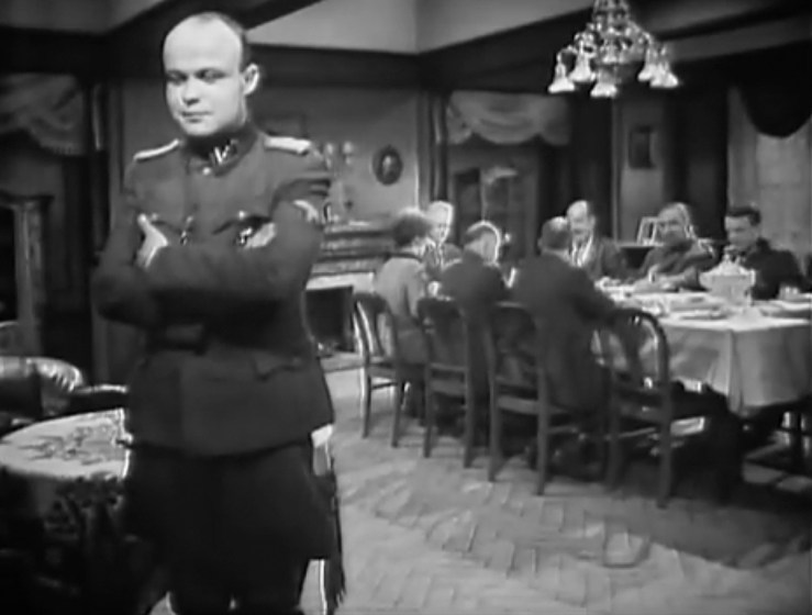 At an estate in East Prussia, landowner von Olbers (Arthur Jopp) is holding a hunting party. He is now a major in the German army and has turned over the everyday duties on his estate to his daughter Hella (Marion van de Kamp). Joining him on his hunting expedition are several high-ranking Nazi officers, including a particularly repugnant SS Obersturmführer named Meisel (Volkmar Kleinert), and Lieutenant Wünsch (Klaus Bamberg), the boyfriend of Anne (Gudrun Ritter), who handles the books for the von Olbers estate. To run things, von Olbers is using Soviet prisoners, who are literally freezing to death in a stable on the estate. When Anne directs estate manager Krawoleit (Ernst Kahler) to provide straw for the prisoners, the act of kindness gets her in trouble with Meisel, who threatens to report her. What Anne doesn’t know is that Krawoleit, whom she has trusted up until now, is a Gestapo informer. Anne doesn’t find any defenders in the von Olbers household, except for Hella, who only defends her because she needs her to run things. The film ends on a question mark, with news of Soviet troops approaching the area and the withdrawal of the German army. What happens after is left unspoken. We leave the story with the Soviet prisoners singing a Russian song, knowing they might soon be freed.1